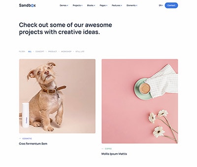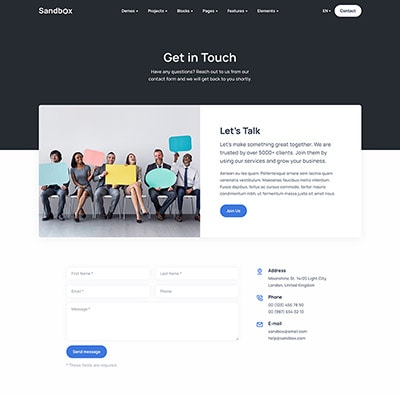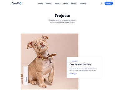 Sandbox includes amazing features and elements to create rich and attractive pages.